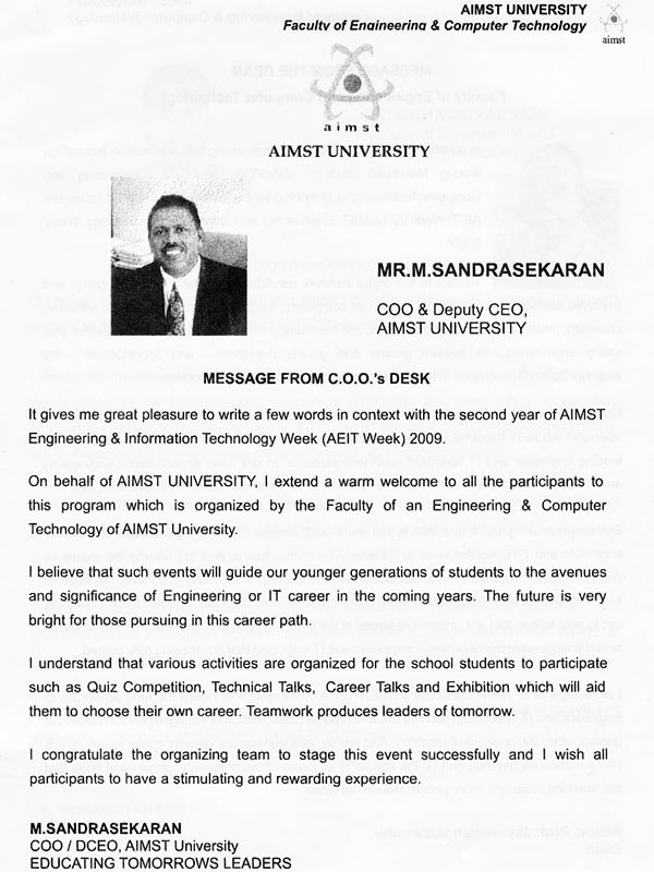- AIMST E-Bulletin Volume II Issue III (October 2016) October 27, 2016