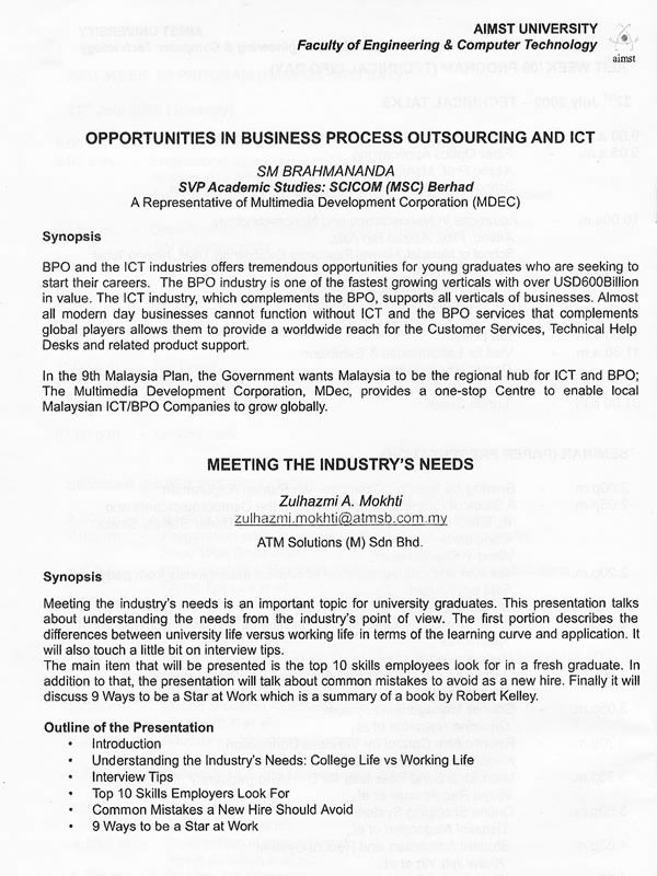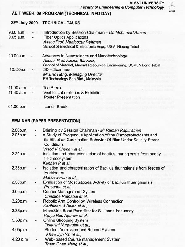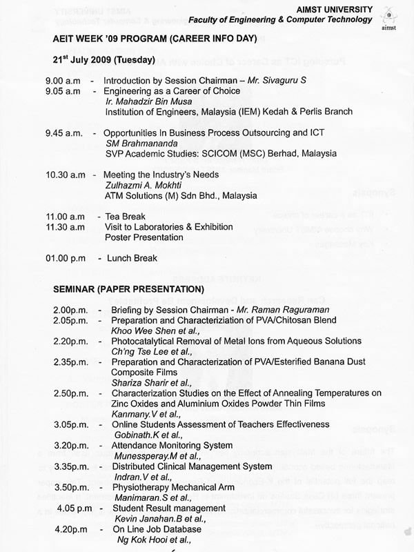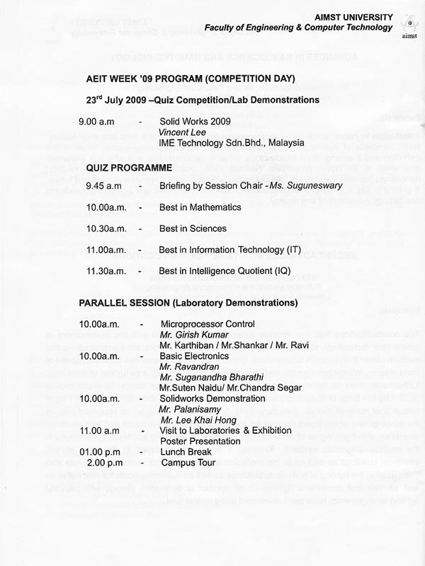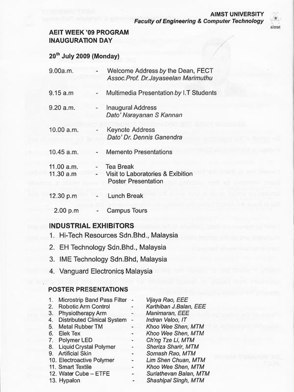 The Event Handbook “Inspiring a new generation for the future” 20th-24th July 2009 organised by Faculty of Engineering and Computer Technology (FECT)