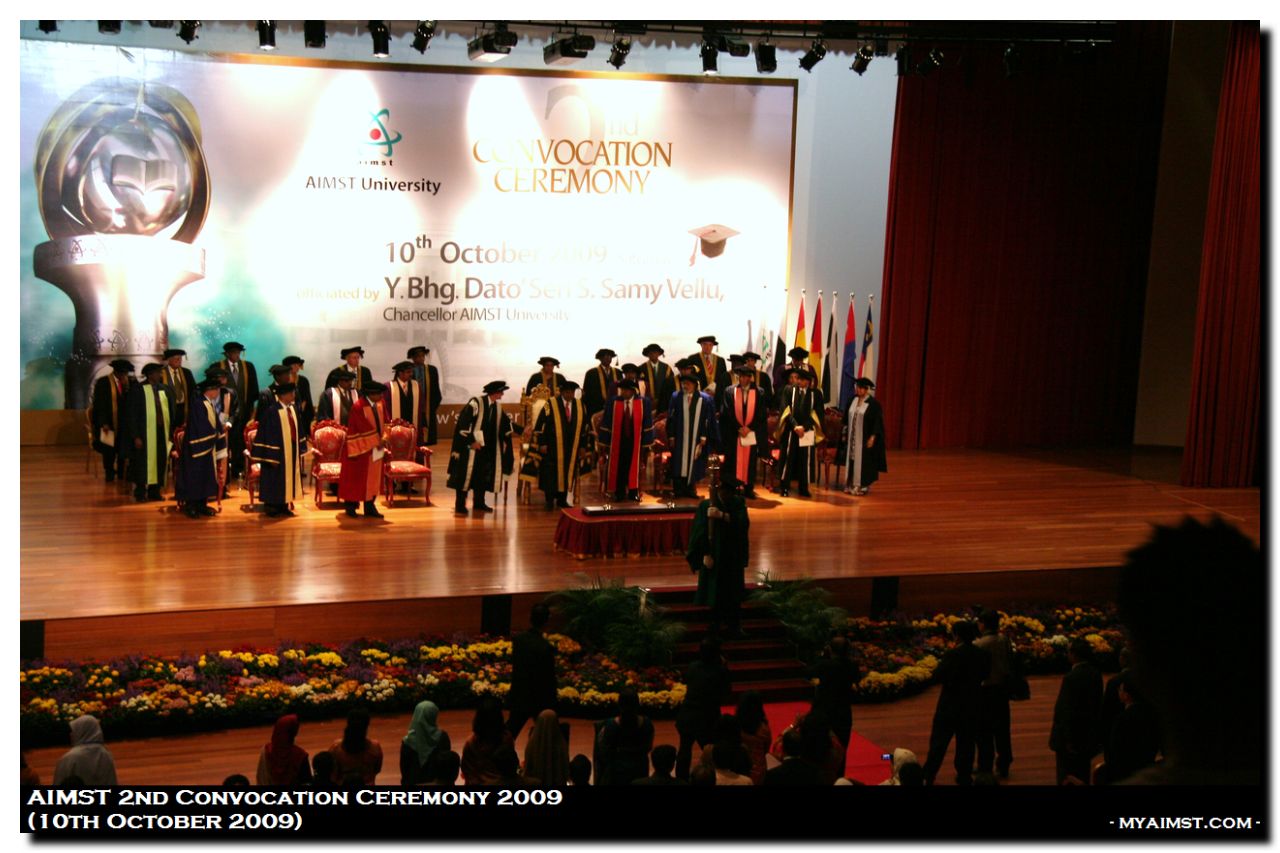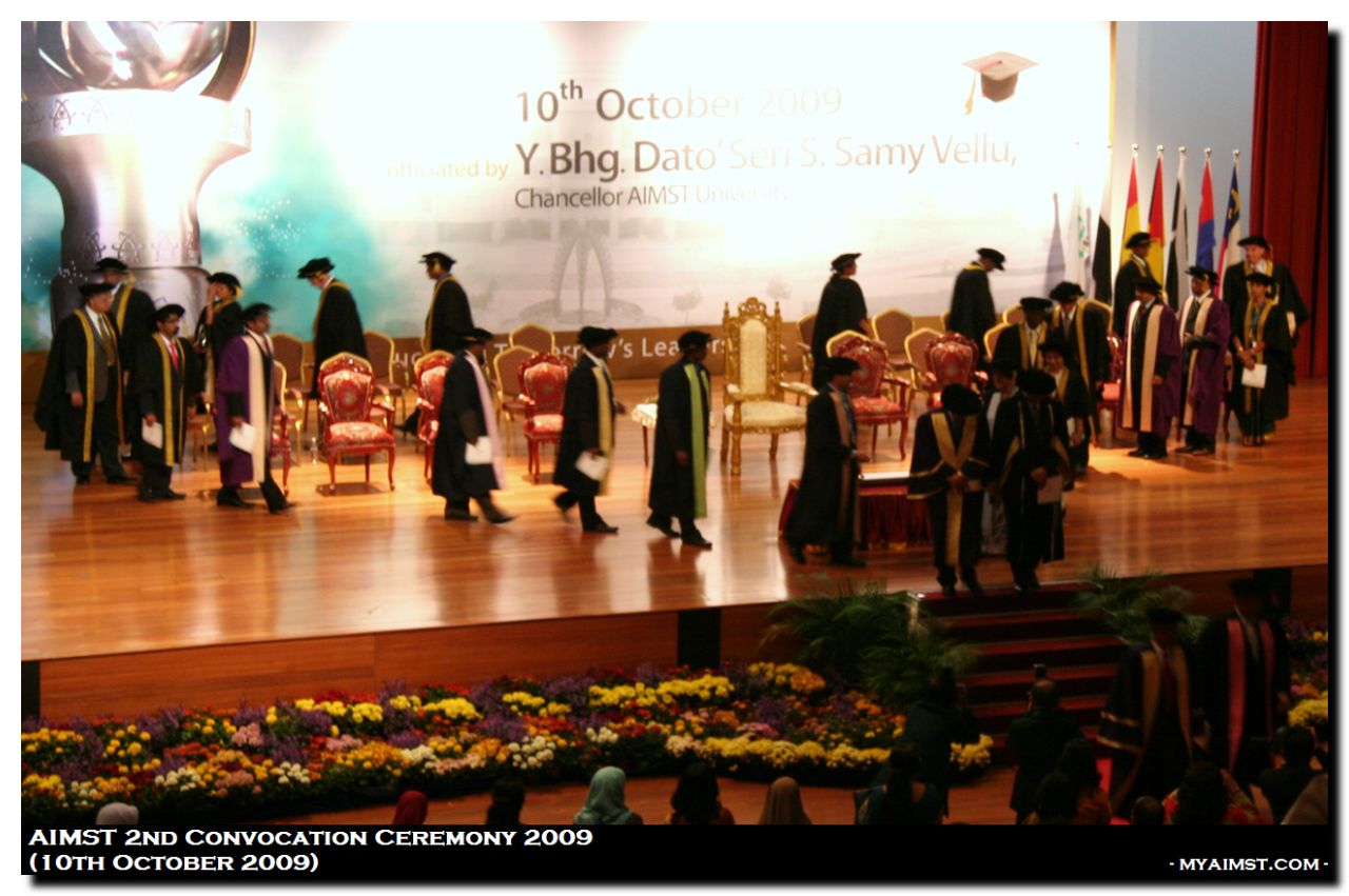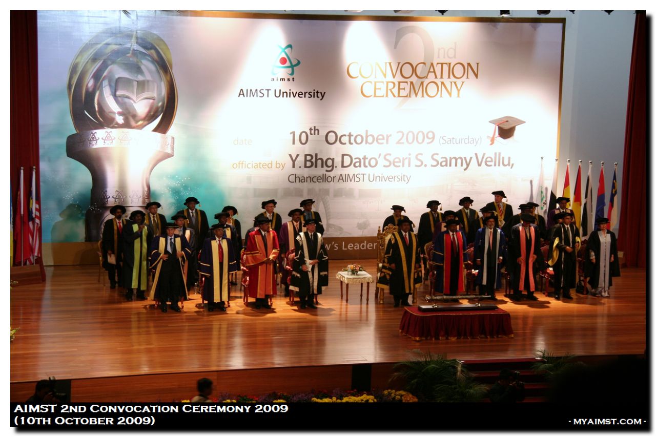 AIMST 2nd Convocation Ceremony 2009 MyAiMsT 17 years ago AIMST 2nd Convocation Ceremony 2009 Date: 10th October 2009 (saturday) Officiated by Y.Bhg.Dato’Seri S.Samy Vellu, Chancellor AIMST University.