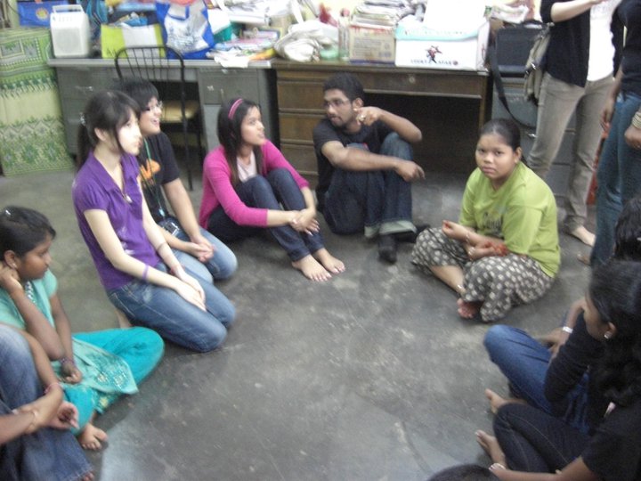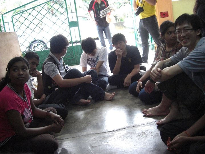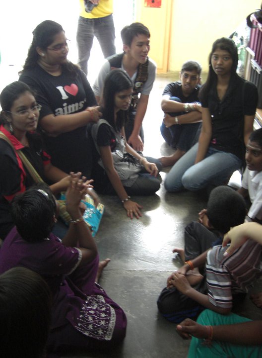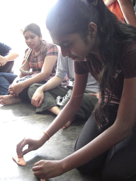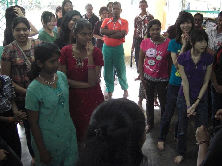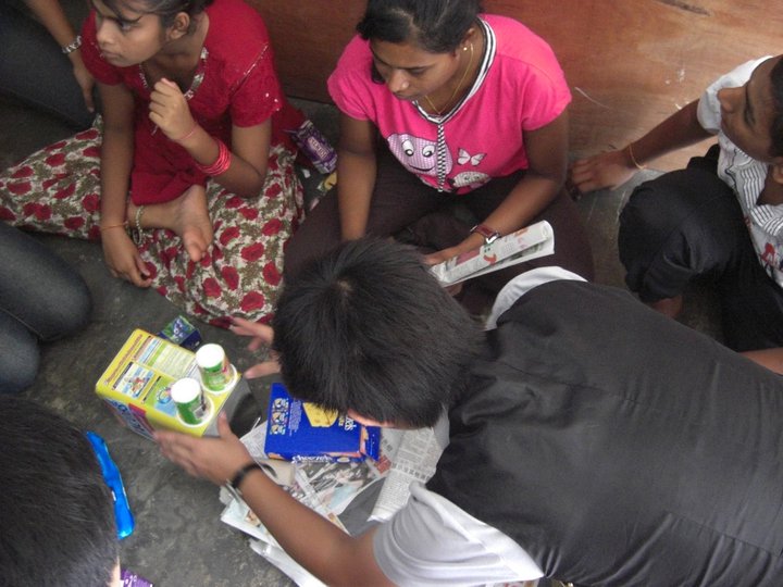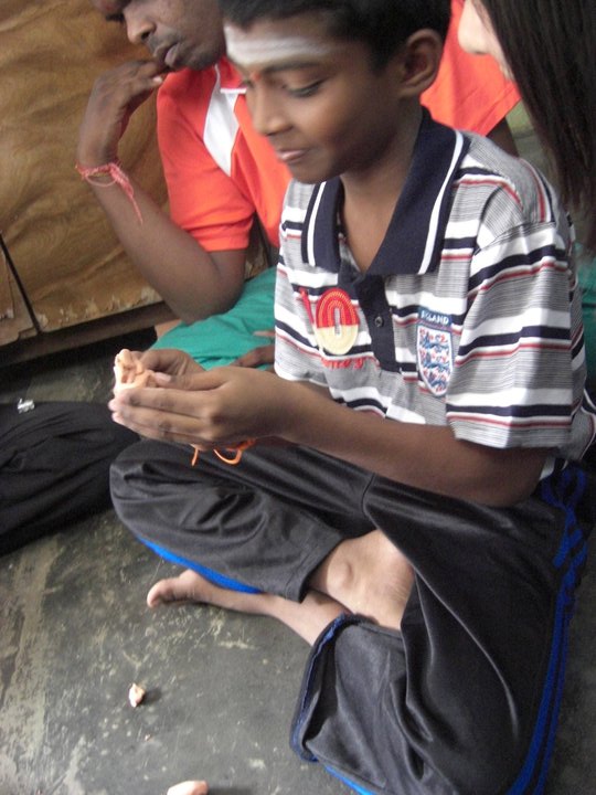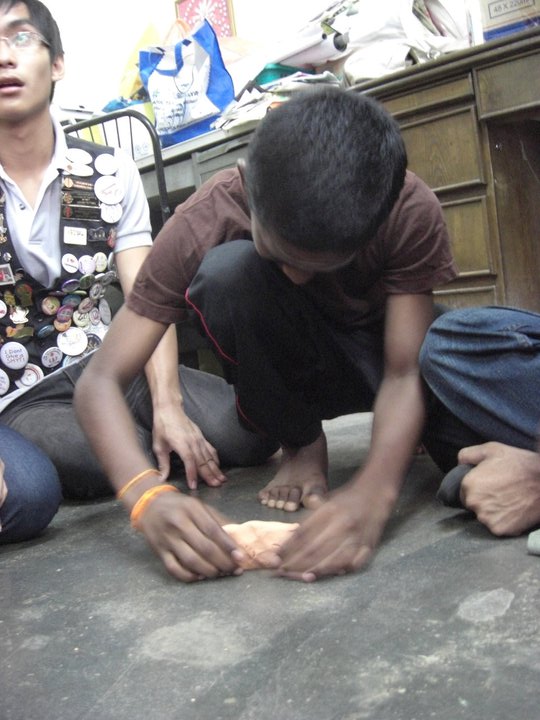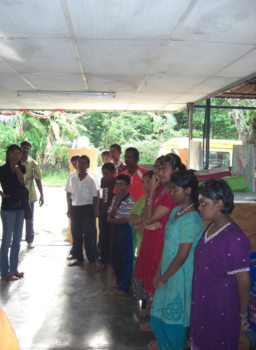 We were invited into the orphanage by the children who were eager to see us. Since most of the children had to go to school only 12 children were present on that day. Before starting our program, the children and some of the members of the club performed their morning Hindu prayers.