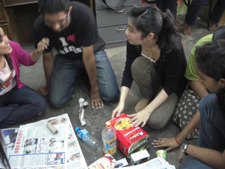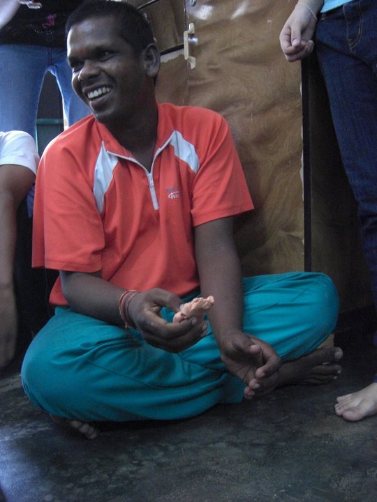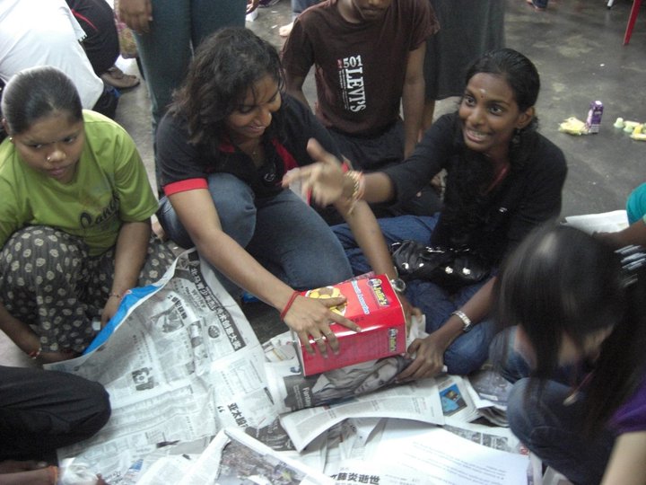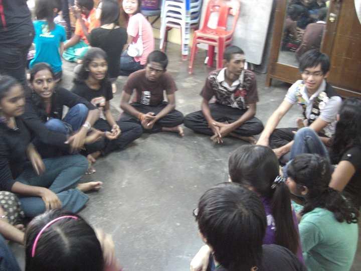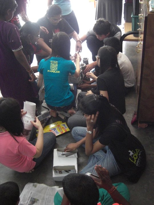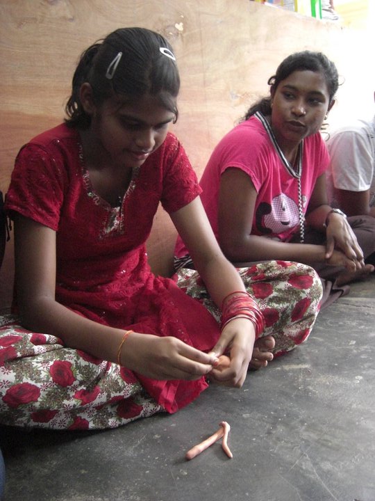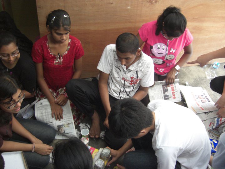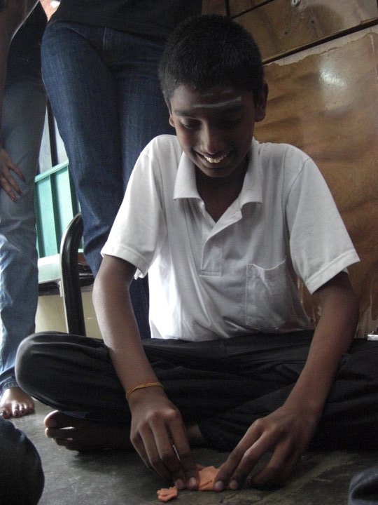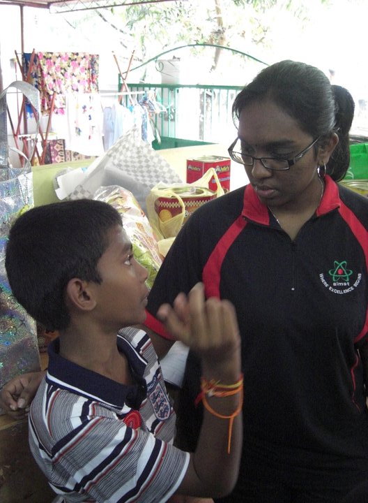 We were invited into the orphanage by the children who were eager to see us. Since most of the children had to go to school only 12 children were present on that day. Before starting our program, the children and some of the members of the club performed their morning Hindu prayers.