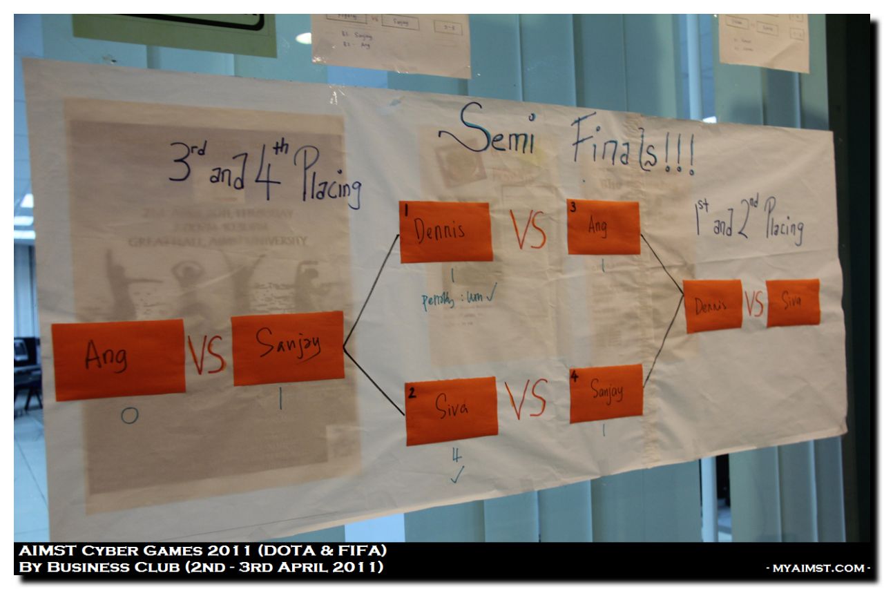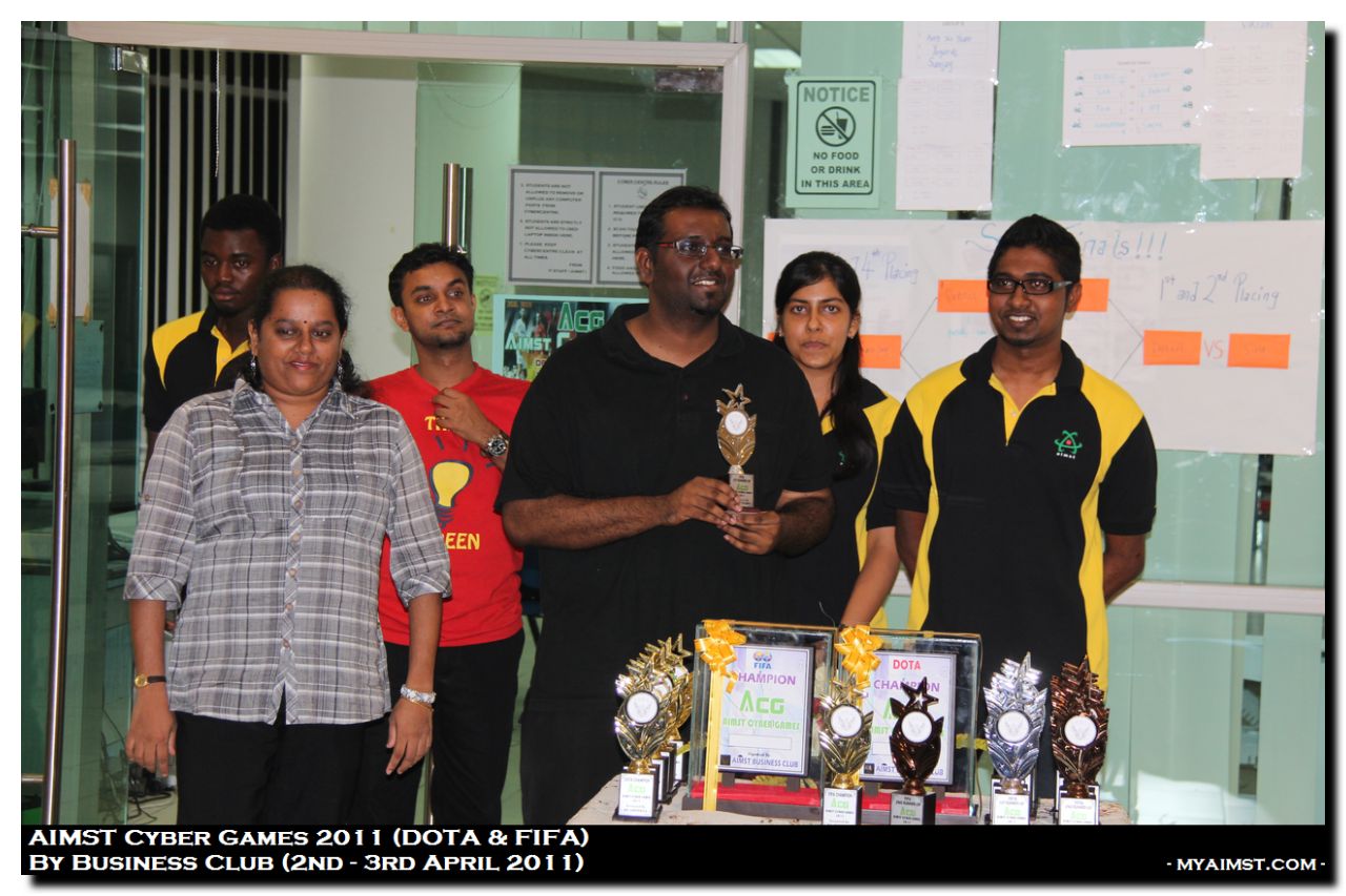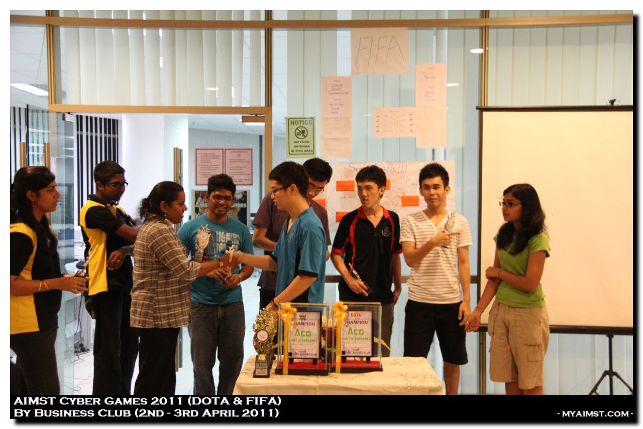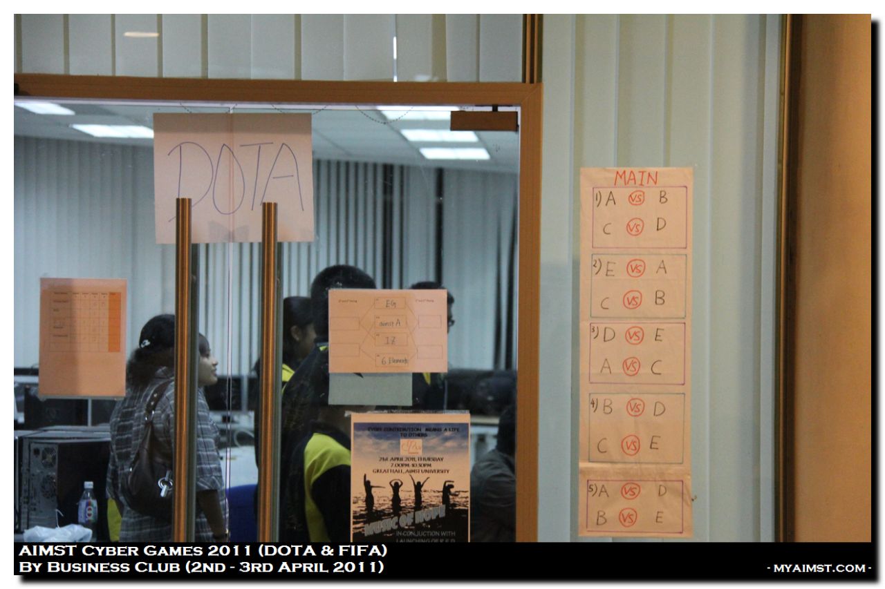 AIMST Cyber Games 2011 MyAiMsT 15 years ago AIMST University Cyber Games 2011, Organised by AIMST Business Club (2nd -3rd April 2011) at AIMST Cyber Center. Games Compete are DOTA (Defense of The Ancient) and FIFA (Fédération Internationale de Football Association) -Photos By RIG