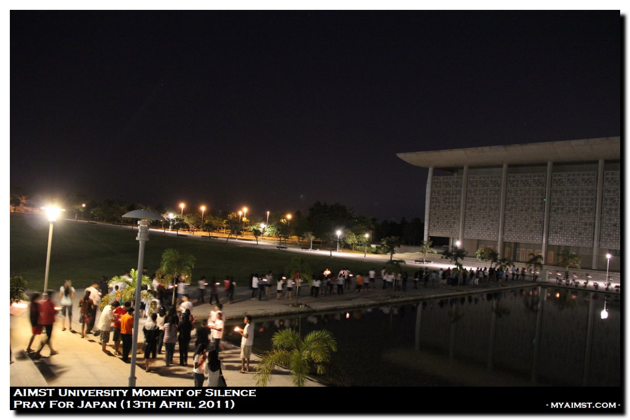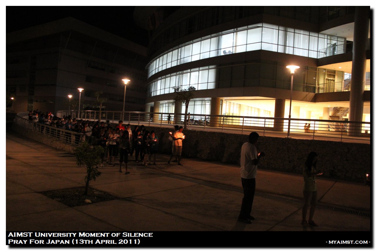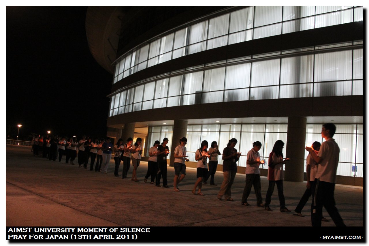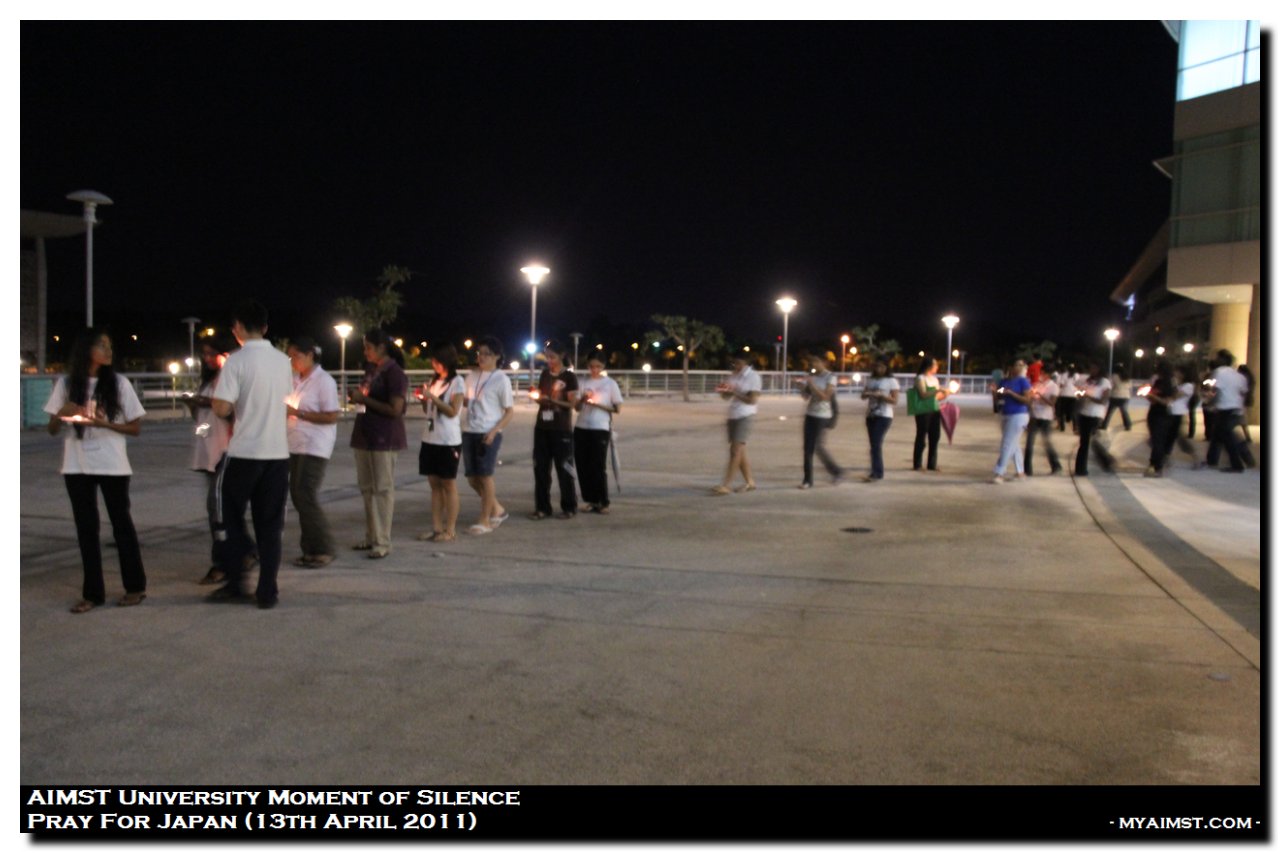 AIMST Pray for Japan – Moment of silence MyAiMsT 15 years ago AIMST Pray for Japan – Moment of silence A moment of Slilence for Victim of Japan Earth Quake 2011. Silent Prayers at AIMST Admin Building , 8.00 P.M. on 13th April 2011. Photo by RIG