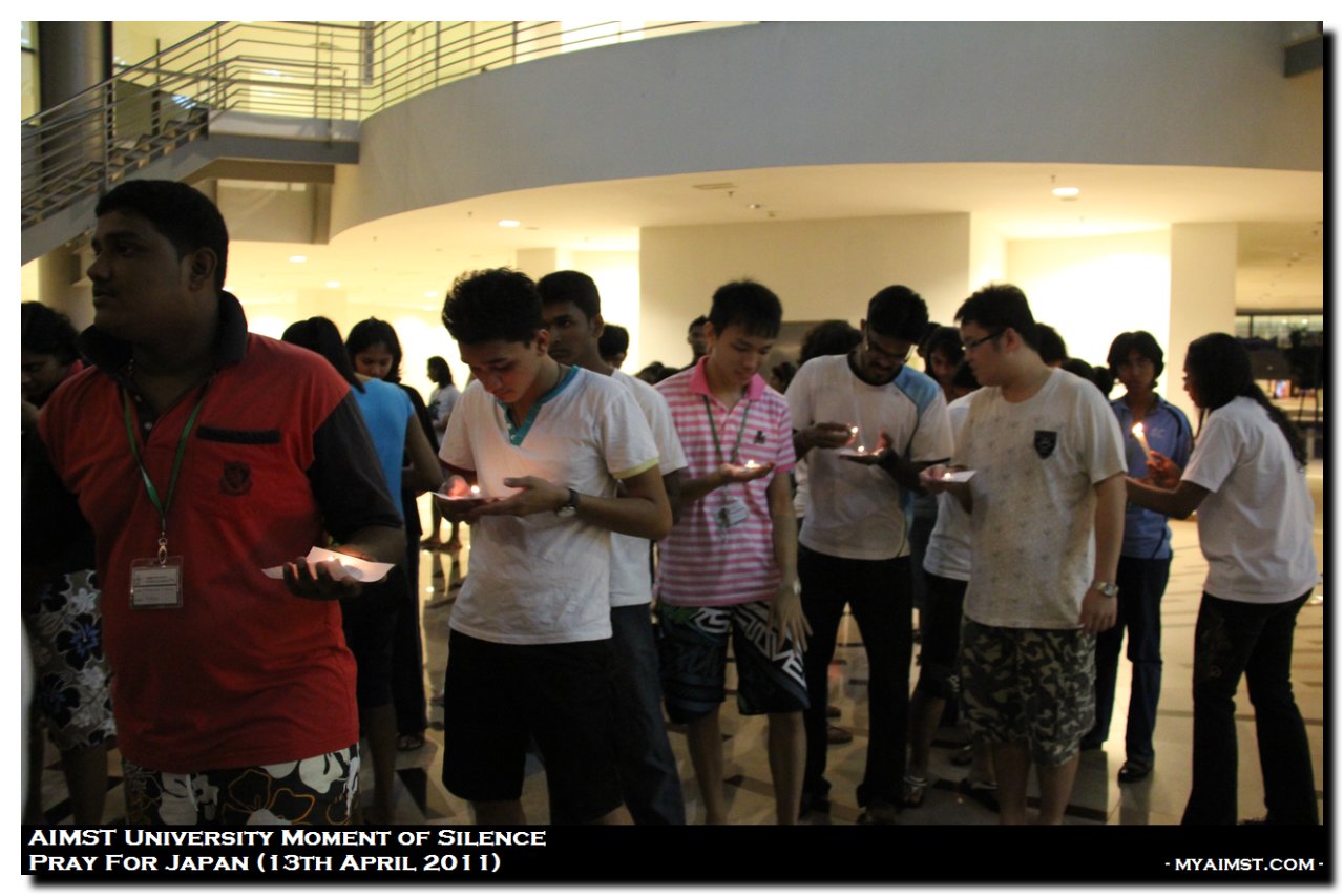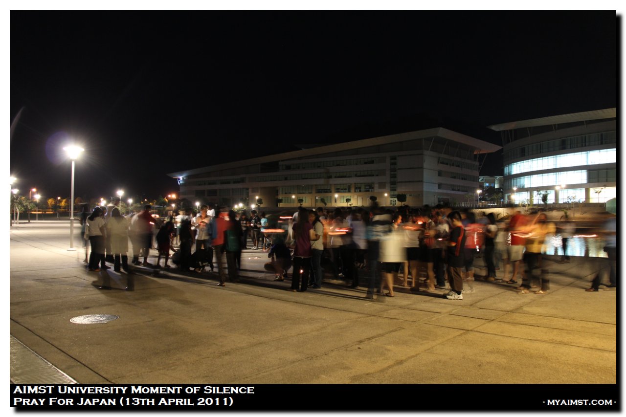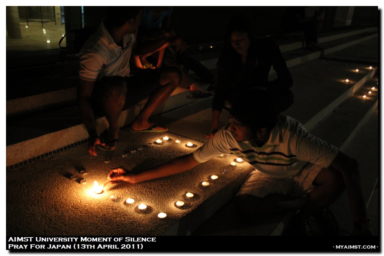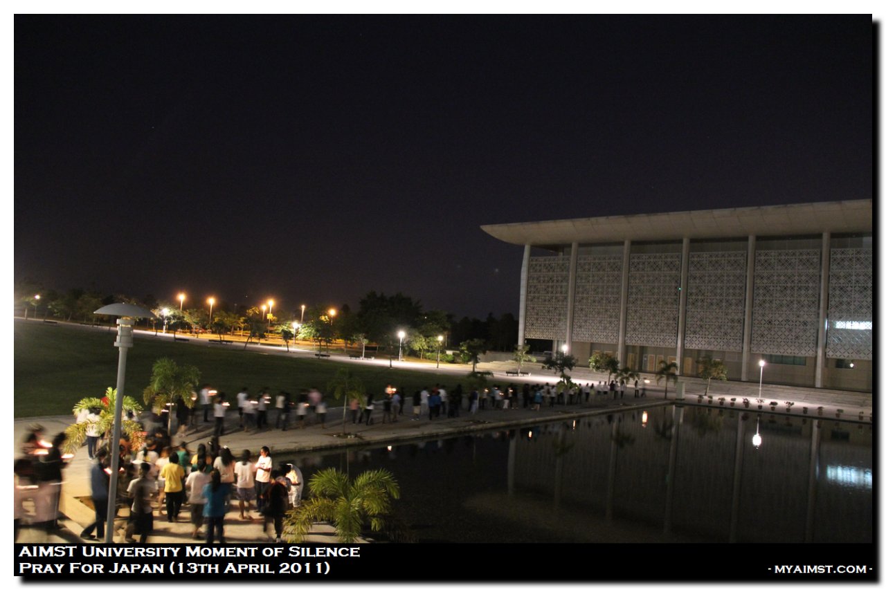 AIMST Pray for Japan – Moment of silence MyAiMsT 15 years ago AIMST Pray for Japan – Moment of silence A moment of Slilence for Victim of Japan Earth Quake 2011. Silent Prayers at AIMST Admin Building , 8.00 P.M. on 13th April 2011. Photo by RIG