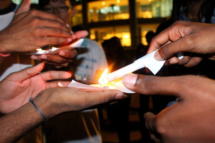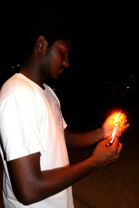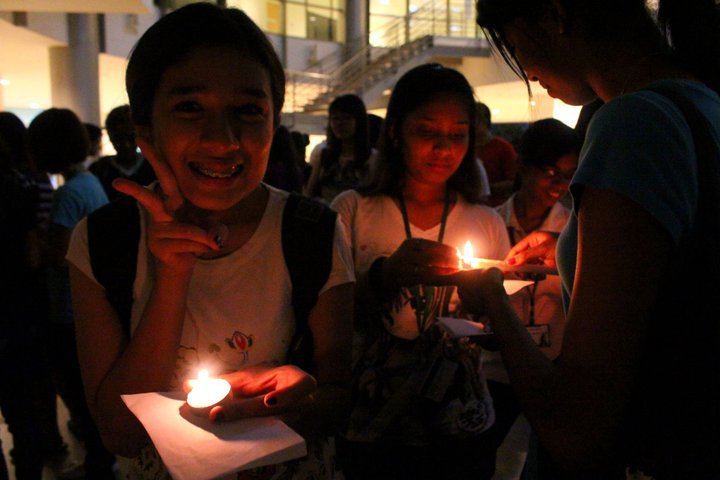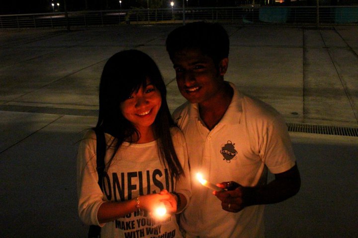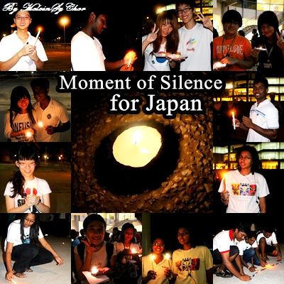 The crowds were participated in a short parade from study area to the admin building. During the 10 minutes parade, everyone kept silence as a sign of respect. After reaching the admin building, Dinesh Kumar gave a brief speech mentioning about the people in Japan and encourage the crowds to show concern and respect. 2 minutes of moment of silence was observed among the crowds to offer their prayers and respect. The candles were placed on the floor to form the Japanese flag.
