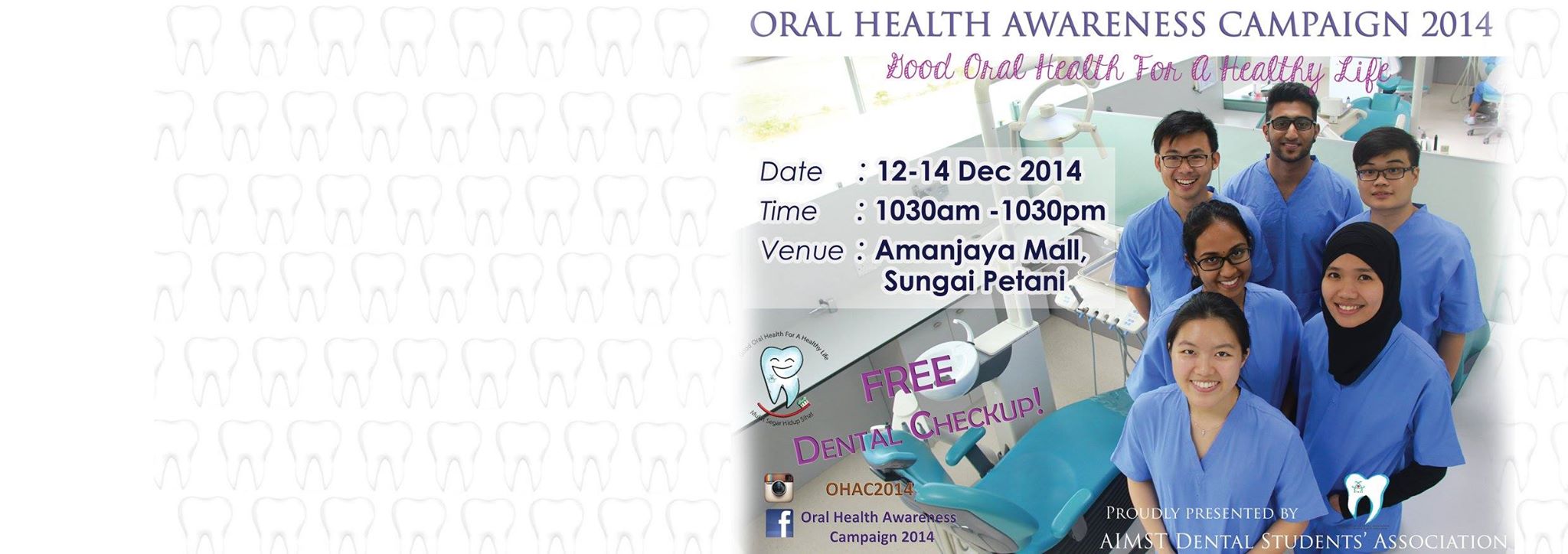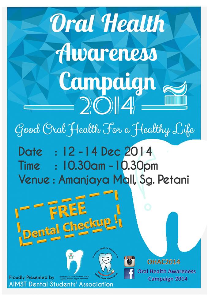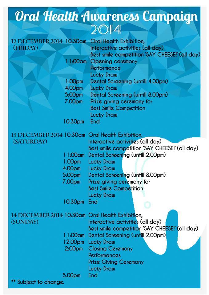 Do visit us at Amanjaya Mall this 12th to 14th December from 10.30am to 10.30pm for more facts and information about your oral health. Please don’t miss out the FREE dental screening and lucky draw sessions !