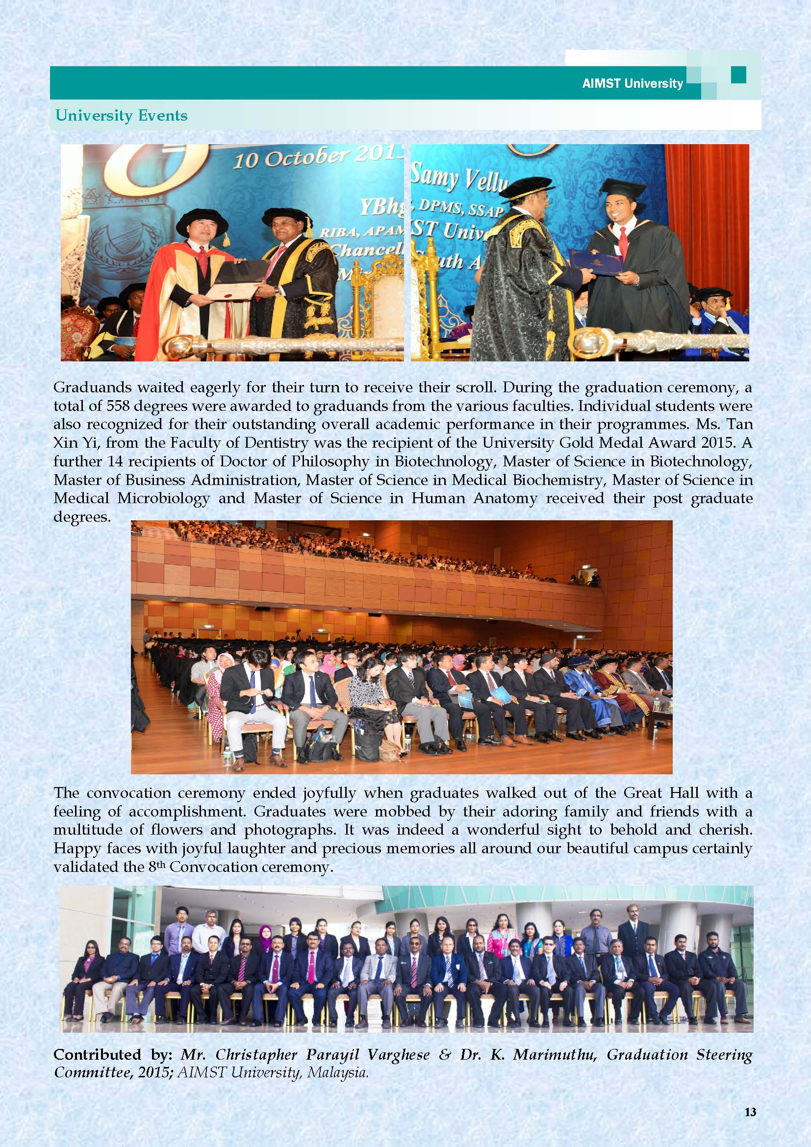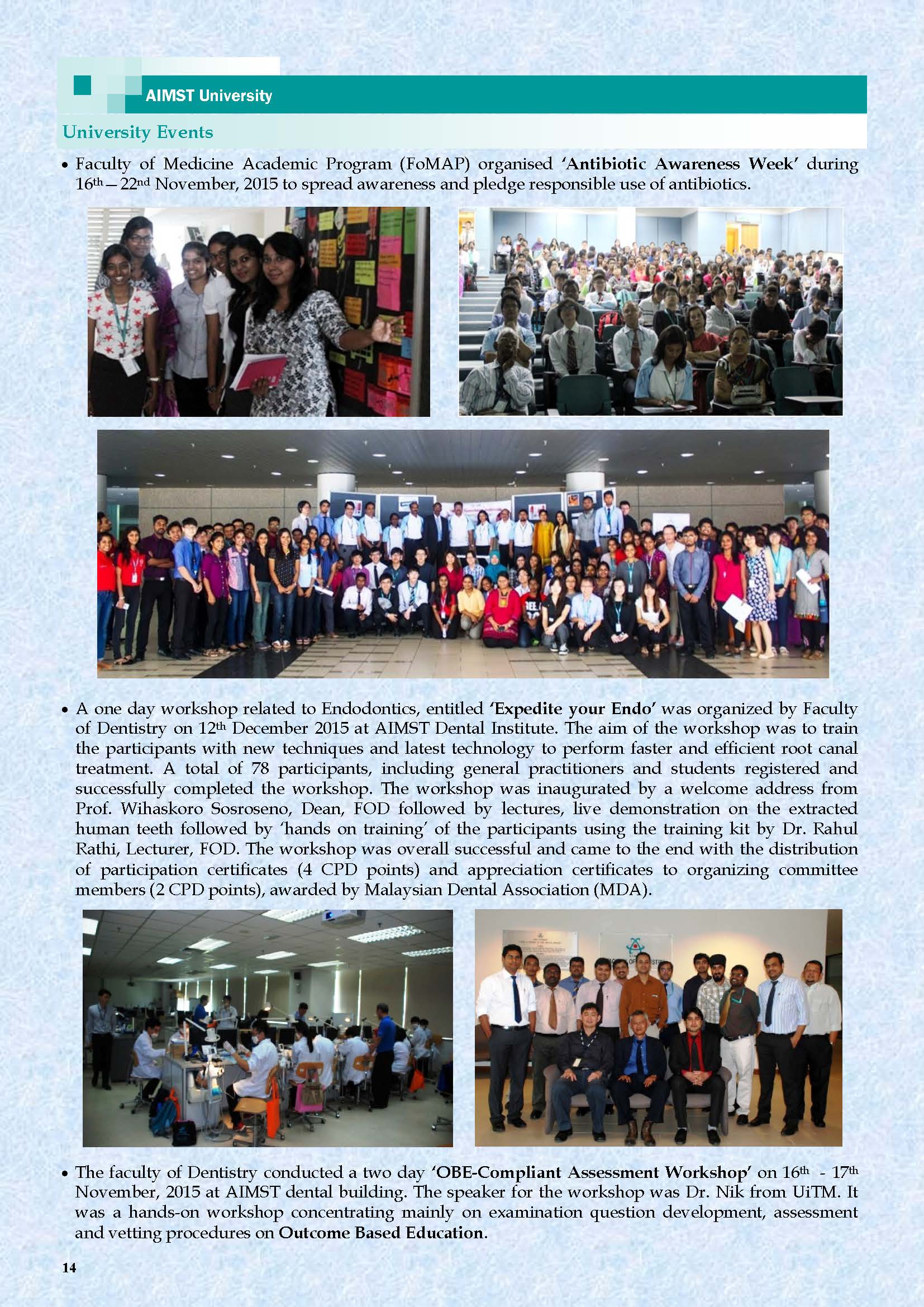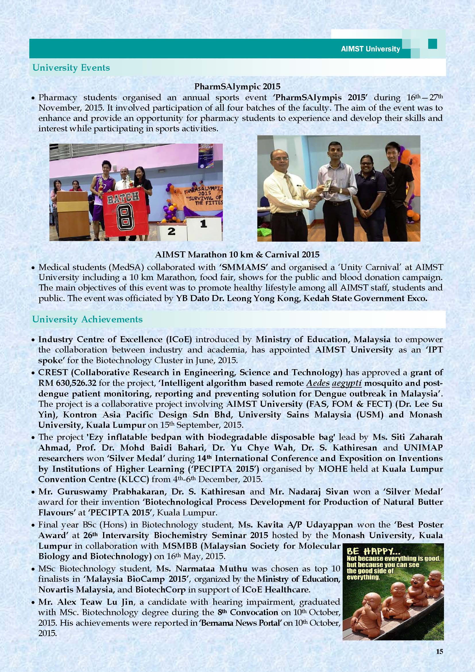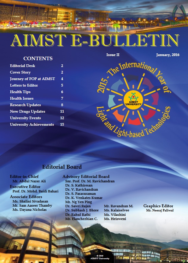 AIMST E-BULLETIN has been started with the intention of disseminating information about the academic, research and other exciting activities of AIMST University. It will also be a platform to share relevant useful information among the staff and students.