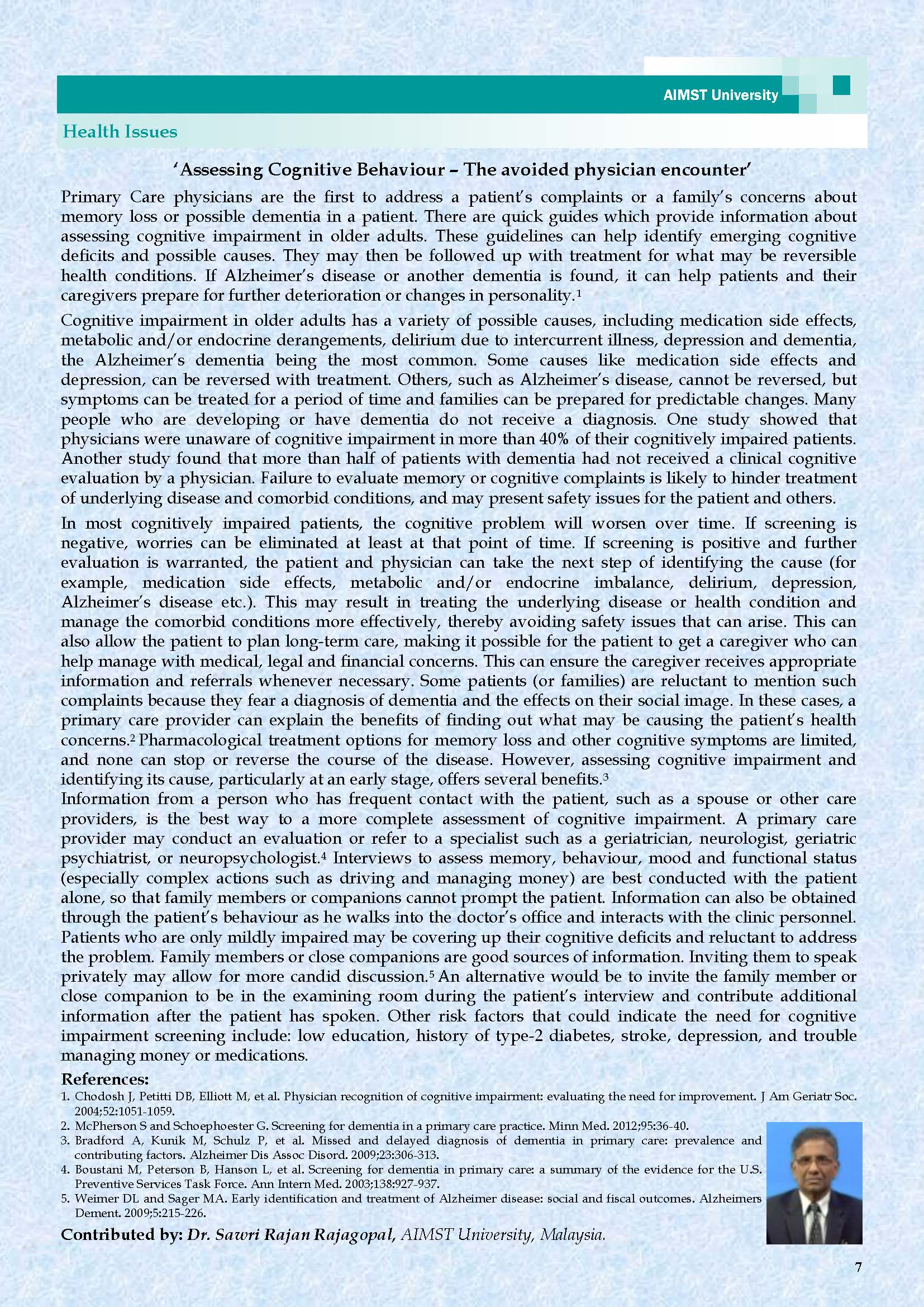 Mr. Abdul Nazer Ali, Editor-in-Chief, AIMST E-Bulletin.