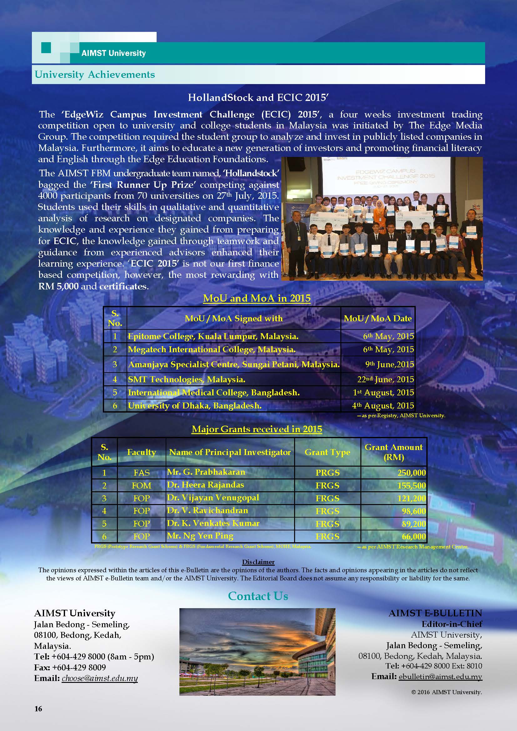 Download Now:AIMST e-Bulletin Vol I Issue II 2016