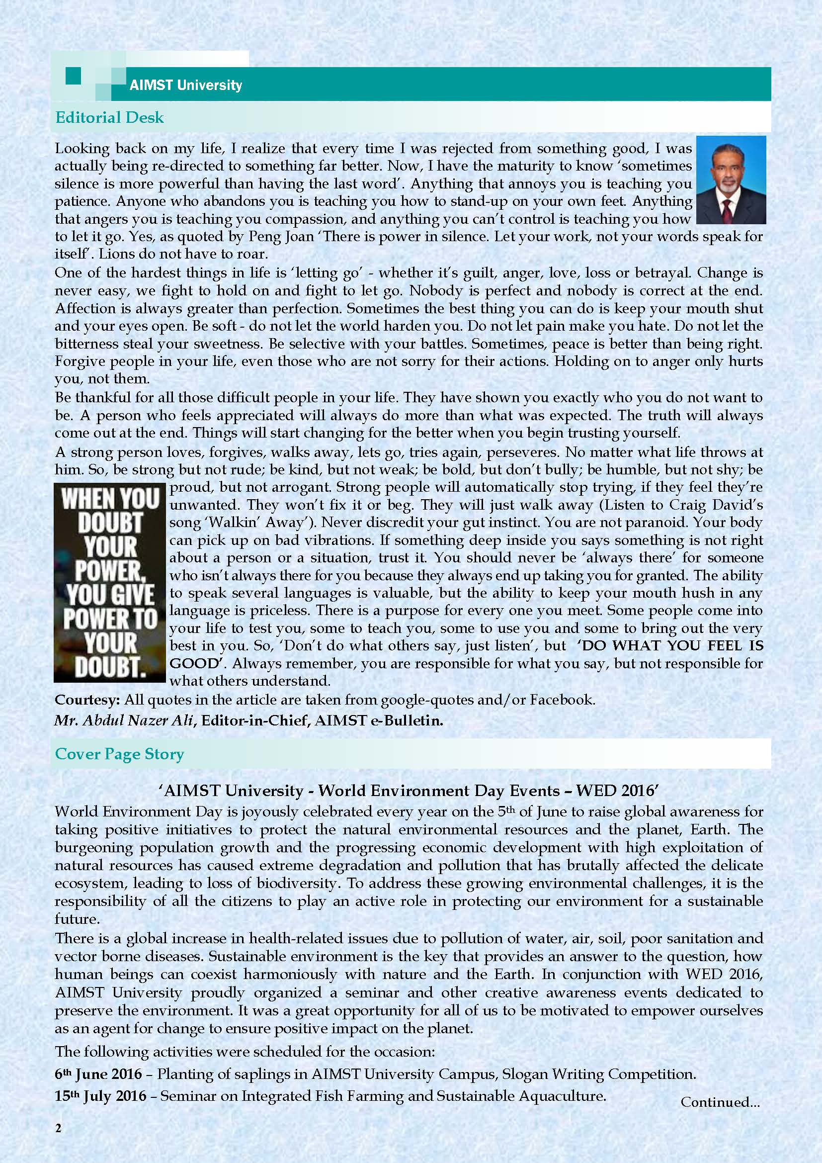 Download: AIMST E-Bulletin Volume II Issue II (July 2016)