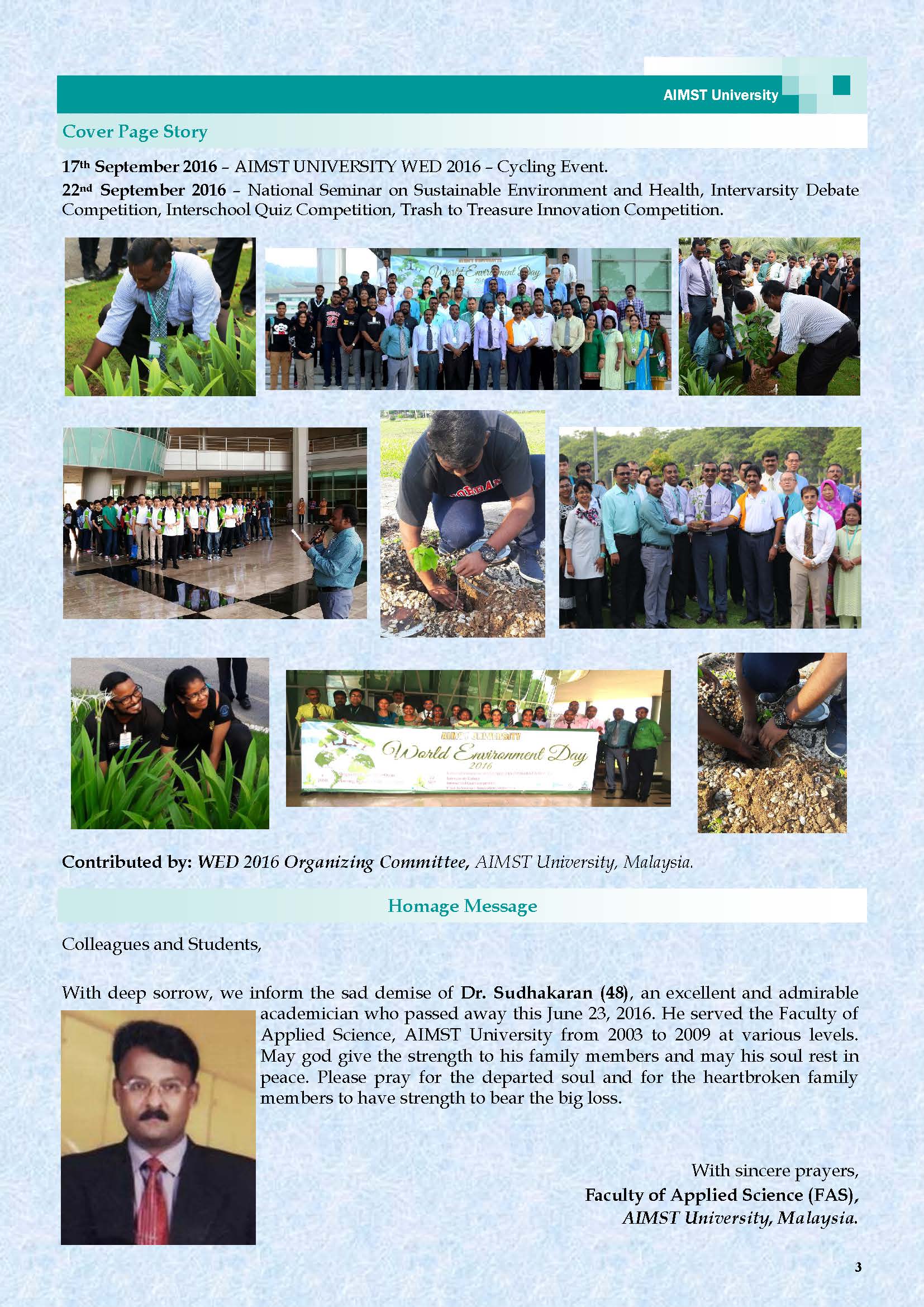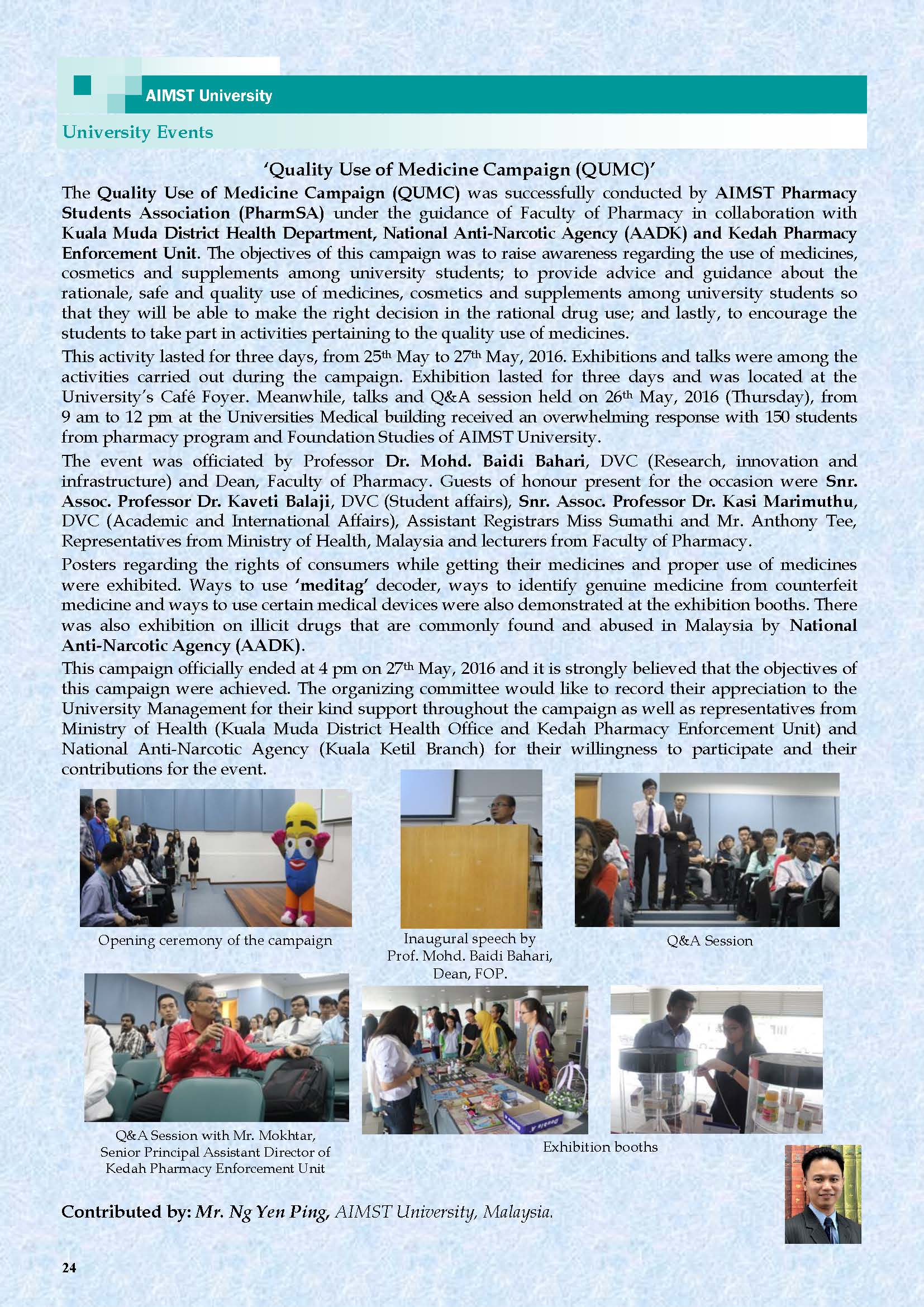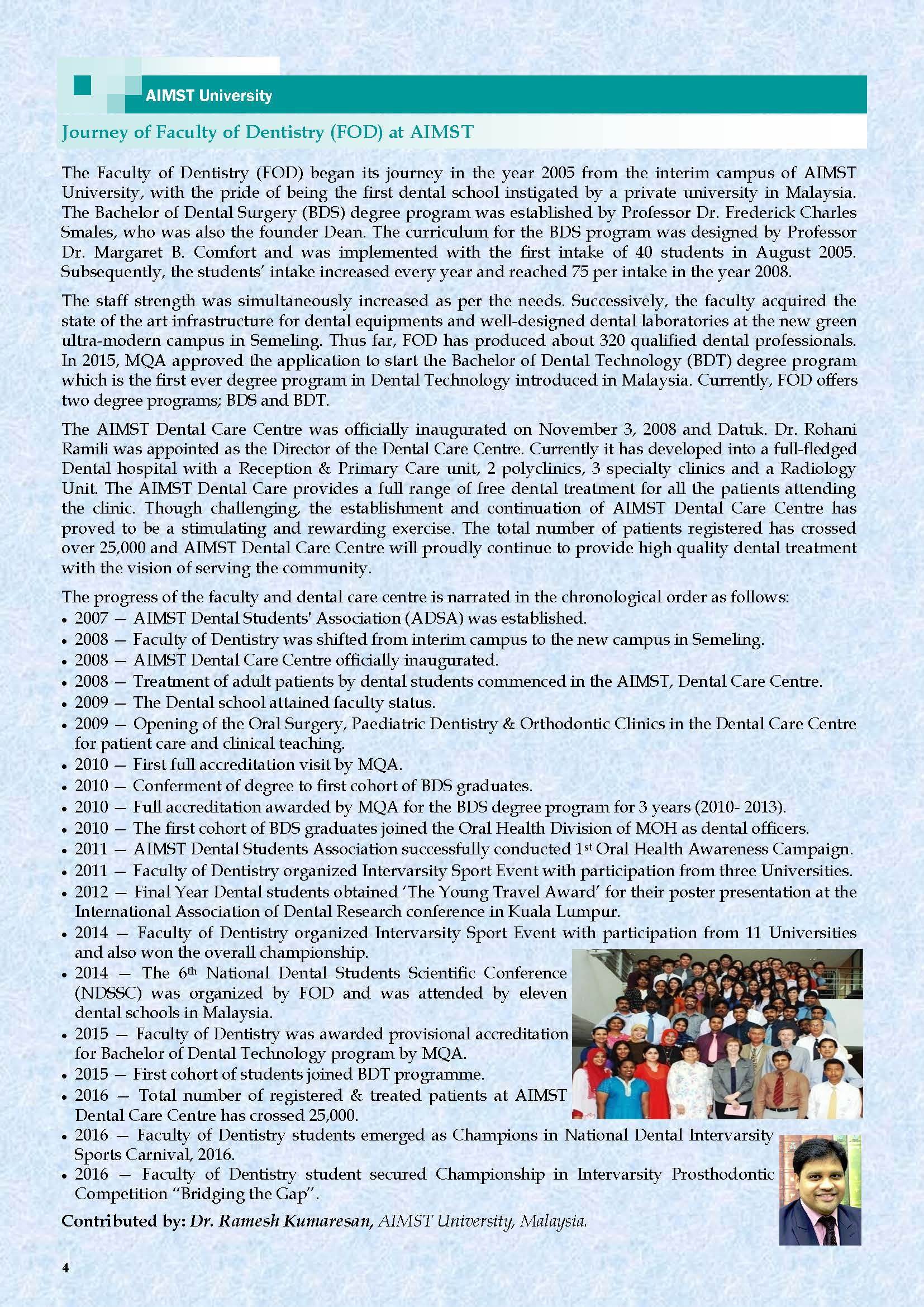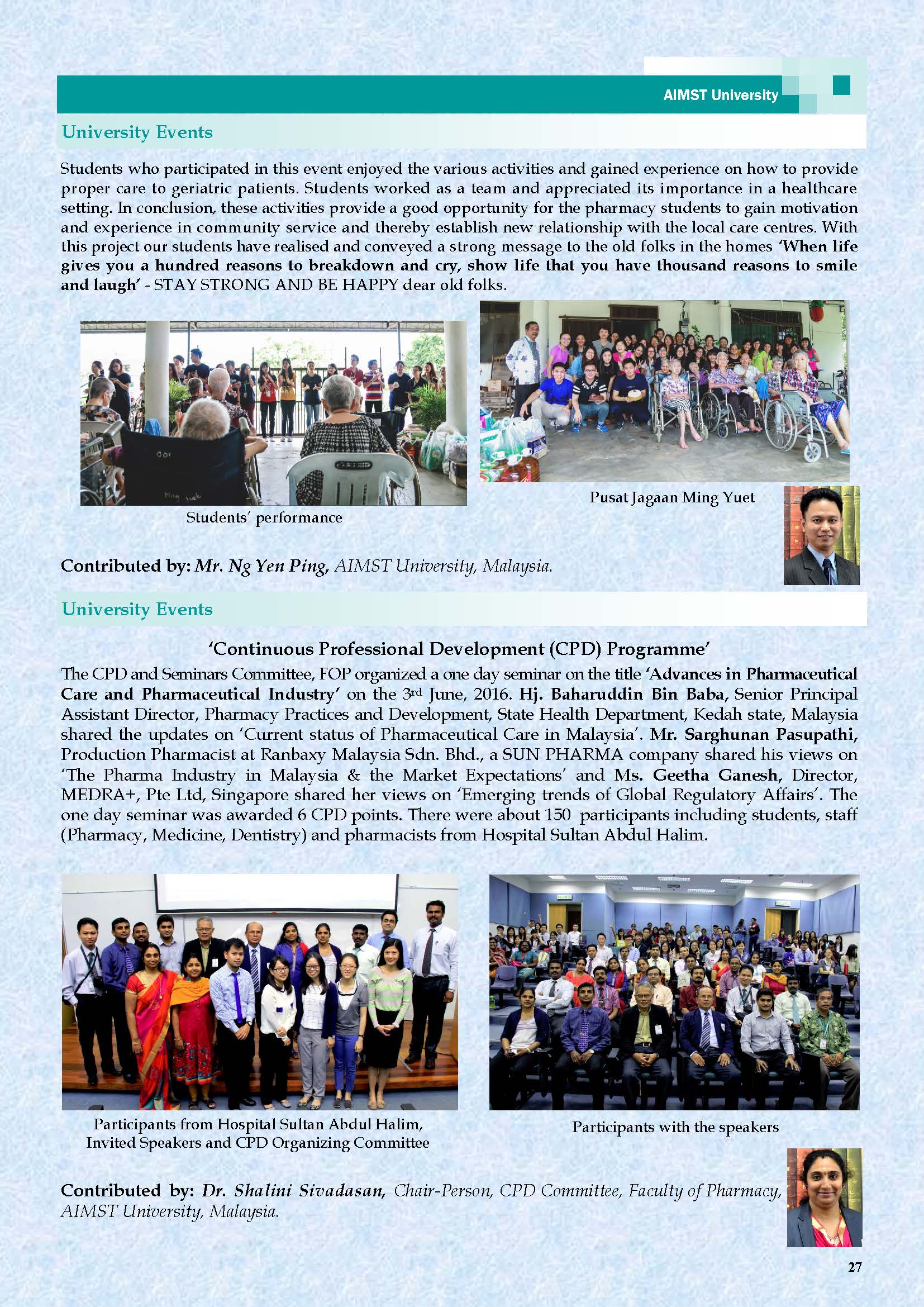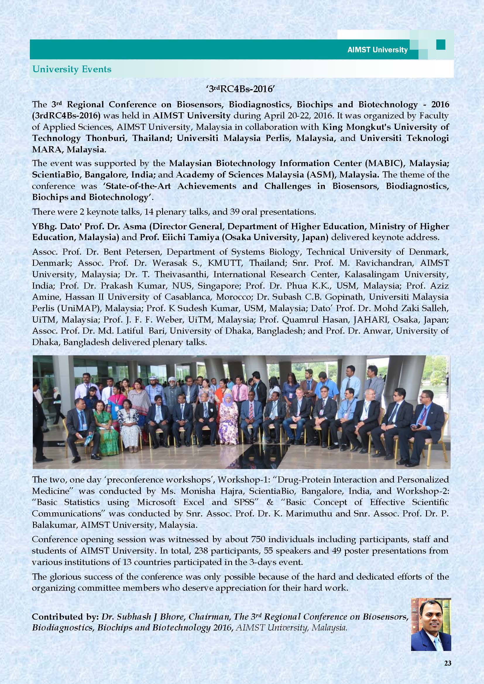 This is the Fourth AIMST Biannually E-Bulletin since its conception. AIMST E-BULLETIN has been started with the intention of disseminating information about the academic, research and other exciting activities of AIMST University. It will also be a platform to share relevant useful information among the staff and students.