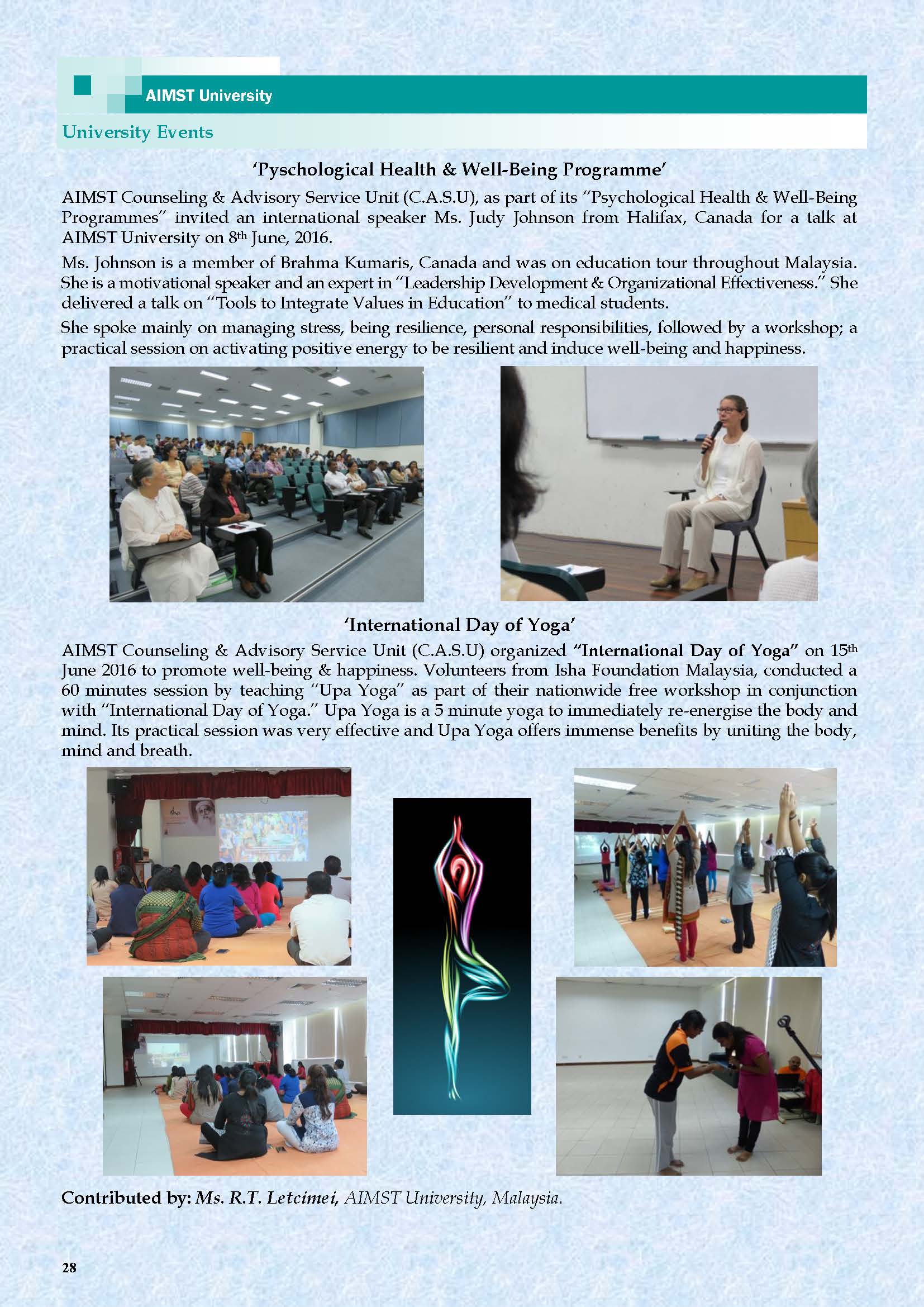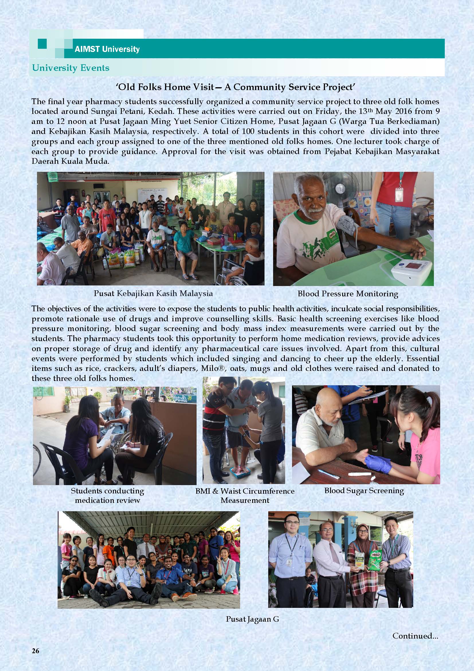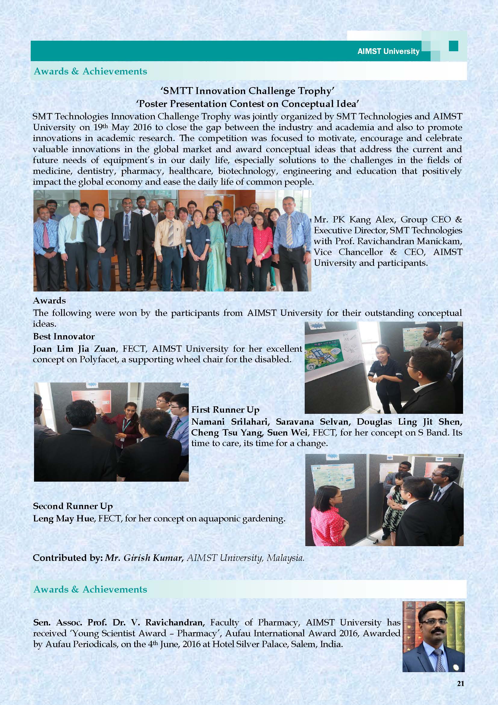 This is the Fourth AIMST Biannually E-Bulletin since its conception. AIMST E-BULLETIN has been started with the intention of disseminating information about the academic, research and other exciting activities of AIMST University. It will also be a platform to share relevant useful information among the staff and students.